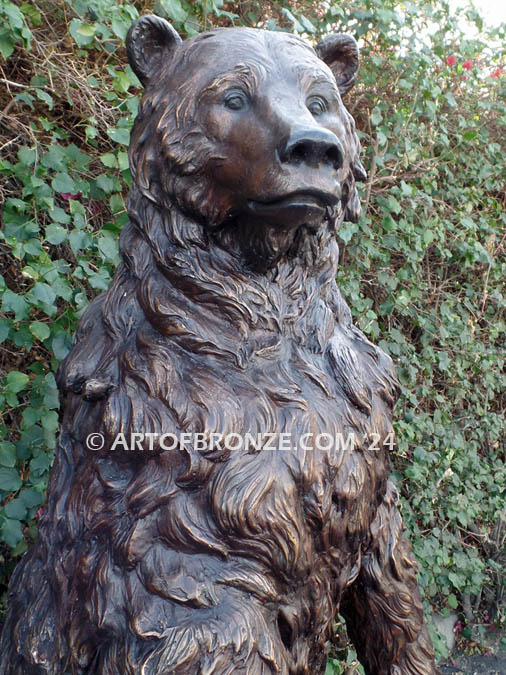 Art of Bronze captures the commanding spirit of the wilderness with this magnificent standing bronze bear statue, a striking work of art that conveys power, curiosity, and natural dominance. Rising upright on his hind legs, the bear stands alert and observant, as though surveying all who pass by with quiet authority and strength.