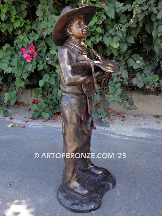 This endearing bronze cowboy sculpture brings a sense of joy, tradition, and frontier spirit that will be enjoyed for generations.
