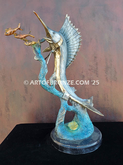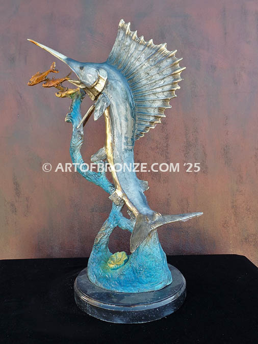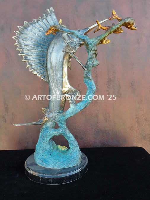 Call Art of Bronze today at (805) 908-5355 to learn more about our- indoor marine animal bronze statues – leaping sailfish bronze sculpture – billfish ocean statue art – marlin and sailfish bronze statue artwork.