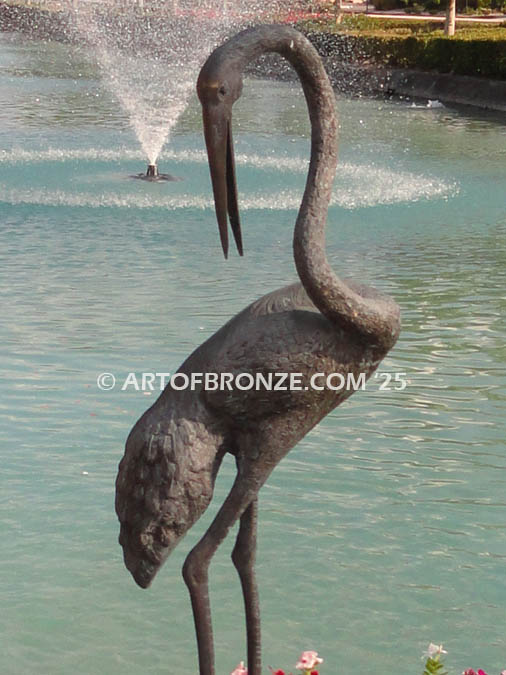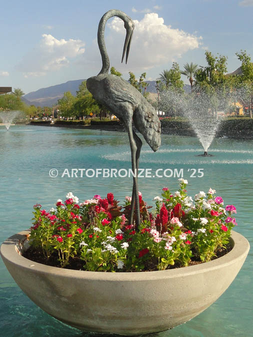 This exclusive crane installation was custom designed and is no longer available to the public. However, Art of Bronze welcomes the opportunity to collaborate on new custom concepts tailored to your property, vision, and environment. If you are seeking a one-of-a-kind bronze statement piece or large-scale sculptural installation, call Art of Bronze today to discuss your ideas and explore other possibilities.