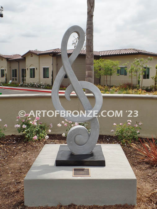 Call Art of Bronze today at (805) 908-5355 to learn more about our – outdoor musical bronze statues – musical sculpture artwork – bronze abstract treble clef music note sculpture.