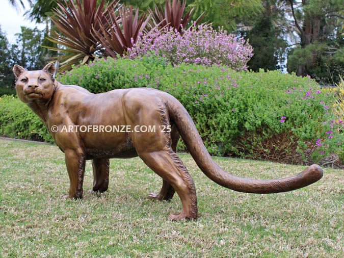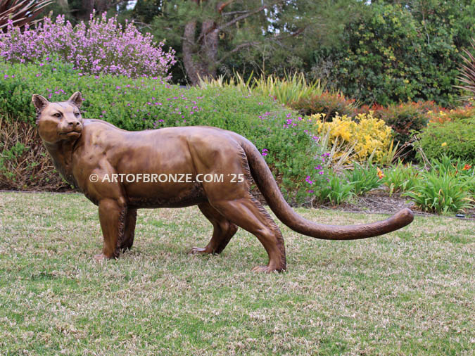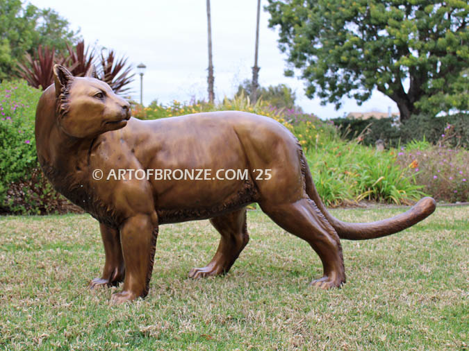 Call Art of Bronze today at (805) 908-5355 to learn more about our- outdoor wildlife bronze statues – bronze wildcat – outdoor standing cougar statue – life-size cougar sculpture – puma, catamount, panther, cougar & mountain lion bronze artwork – big cat school mascots.