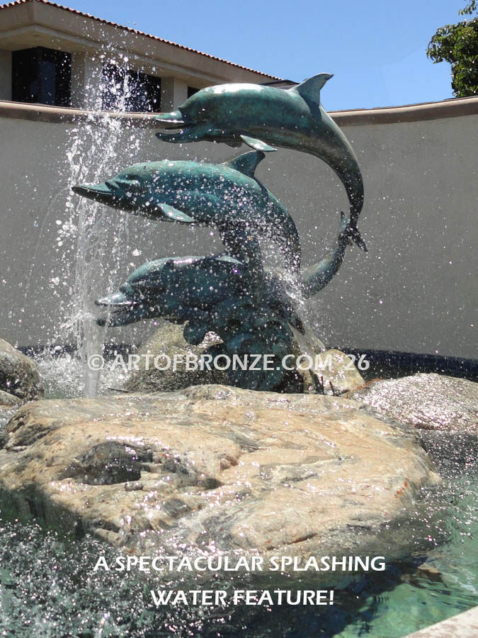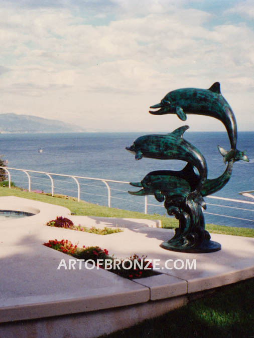 Bring the joyful spirit and graceful motion of ocean life to your landscape with this stunning three dolphin bronze sculpture. This delightful composition features three lifelike dolphins leaping upward in succession above a beautifully sculpted wave base, creating a dynamic sense of movement and harmony inspired by the natural rhythm of the sea.