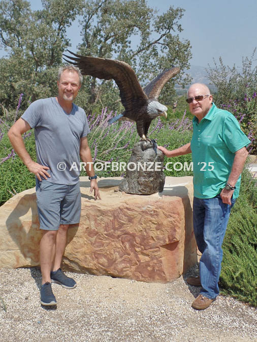 Call Art of Bronze today at (805) 908-5355 to learn more about our- outdoor birds of prey bronze statues – bronze American bald eagle sculpture – outdoor landing eagle on branch statue –monumental bronze flying eagle statue – custom eagle sculpture and artwork.