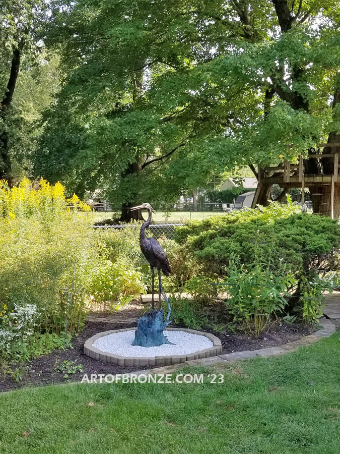 Designed with versatility in mind, this sculpture includes pre-installed copper tubing, allowing you the option to transform it into a fountain feature with water gently spraying or flowing from its bill. Whether displayed as a dry sculpture or incorporated into a pond or courtyard water feature, this bronze heron will elevate gardens, estates, waterfront properties, and commercial landscapes with timeless sophistication.