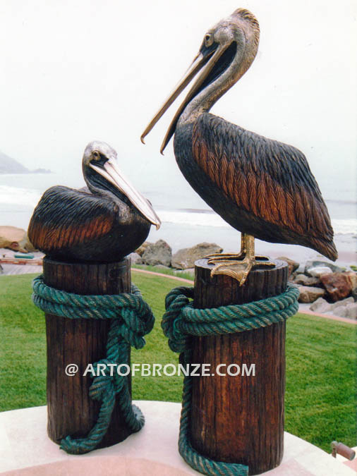 Call Art of Bronze today at (805) 908-5355 to learn more about our- outdoor Audubon bronze statues – bronze pelican pair – standing bronze pelican sculptures – goliath pelican pair bronze sculpture – bird fountains.