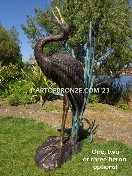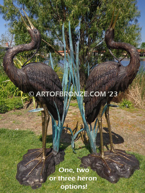 Designed as both sculpture and water feature, copper tubing is pre-installed within each heron, allowing water to stream upward from their beaks. Cast in durable bronze, these sculptures are built to endure all outdoor environments, making them ideal for gardens, memorial parks, fountains, and large landscape installations.