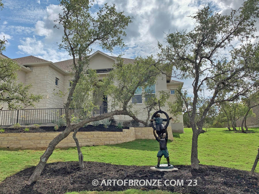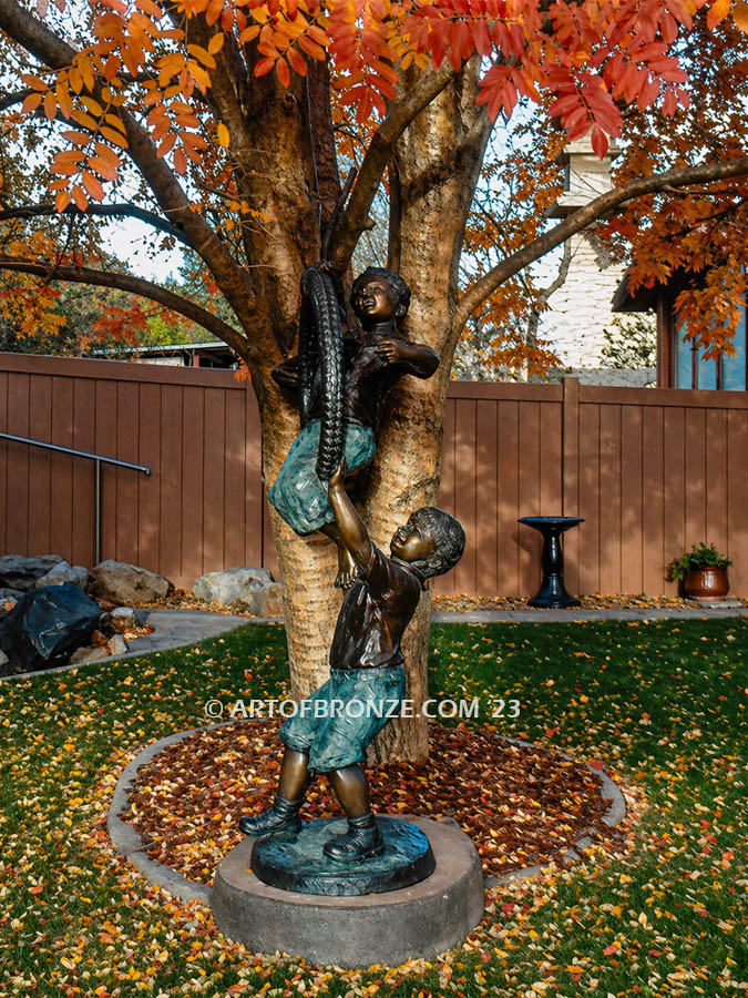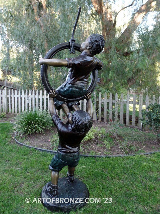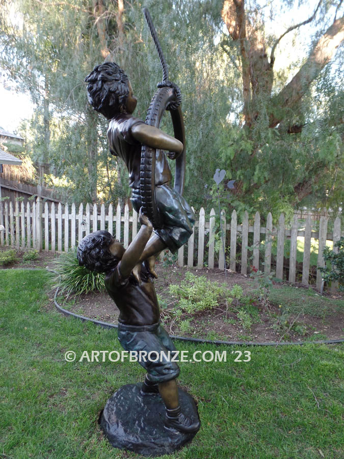 Call Art of Bronze today at (805) 908-5355 to learn more about our- outdoor bronze children statues – kids playing together bronze statue – two brothers playing bronze statue- outdoor children garden sculptures – bronze kids on swing – children and kid bronze artwork.