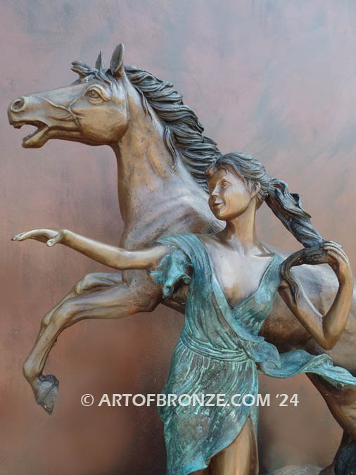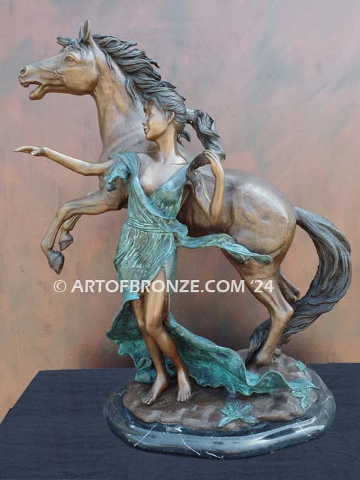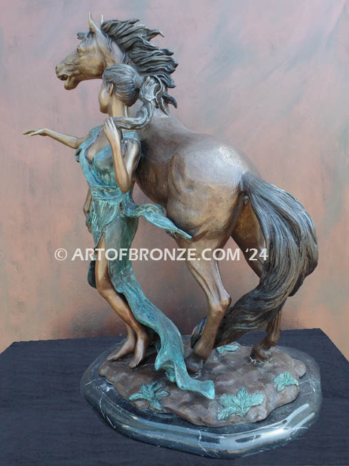 Call Art of Bronze today at (805) 908-5355 to learn more about our- indoor woman and stallion bronze sculpture – figurative bronze sculpture artwork – romantic horse lover sculpture art – nude woman and horse bronze statue and sculptures